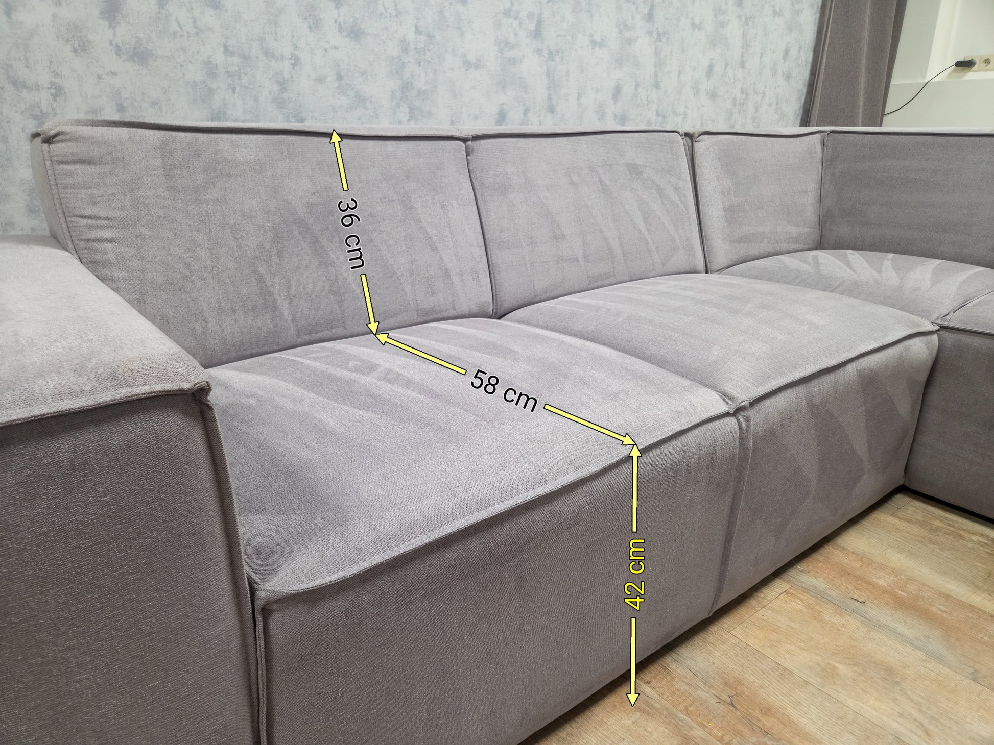 - Zithoogte: 42 cm | Zitdiepte: 58 cm