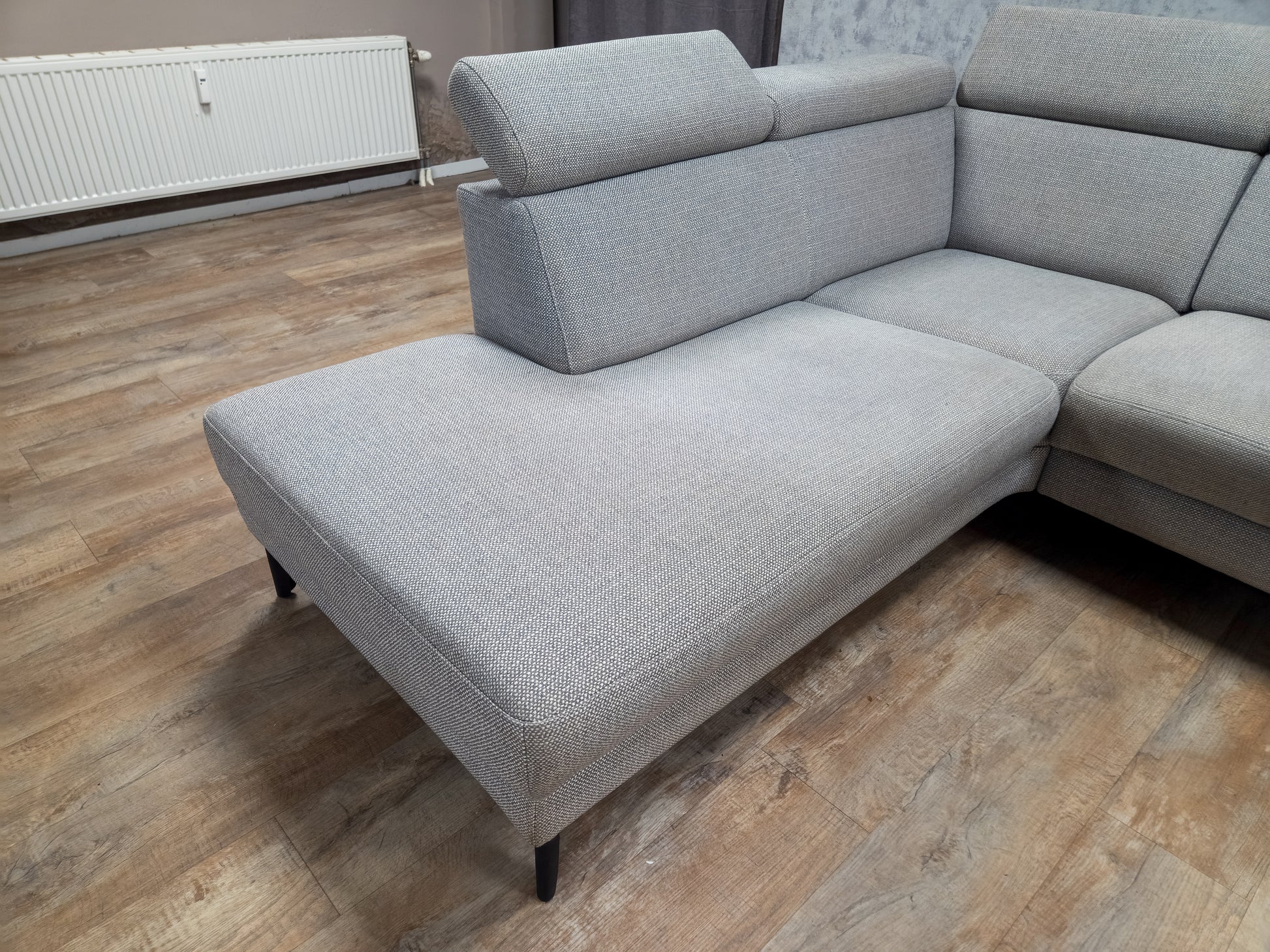 De bank verkeert in zeer mooie, nette staat en biedt een uitstekend zitcomfort. Dankzij het tijdloze design van MONTEL en de moderne grijze stoffen bekleding past deze hoekbank perfect in diverse interieurstijlen. Ideaal om te ontspannen met familie of gasten.