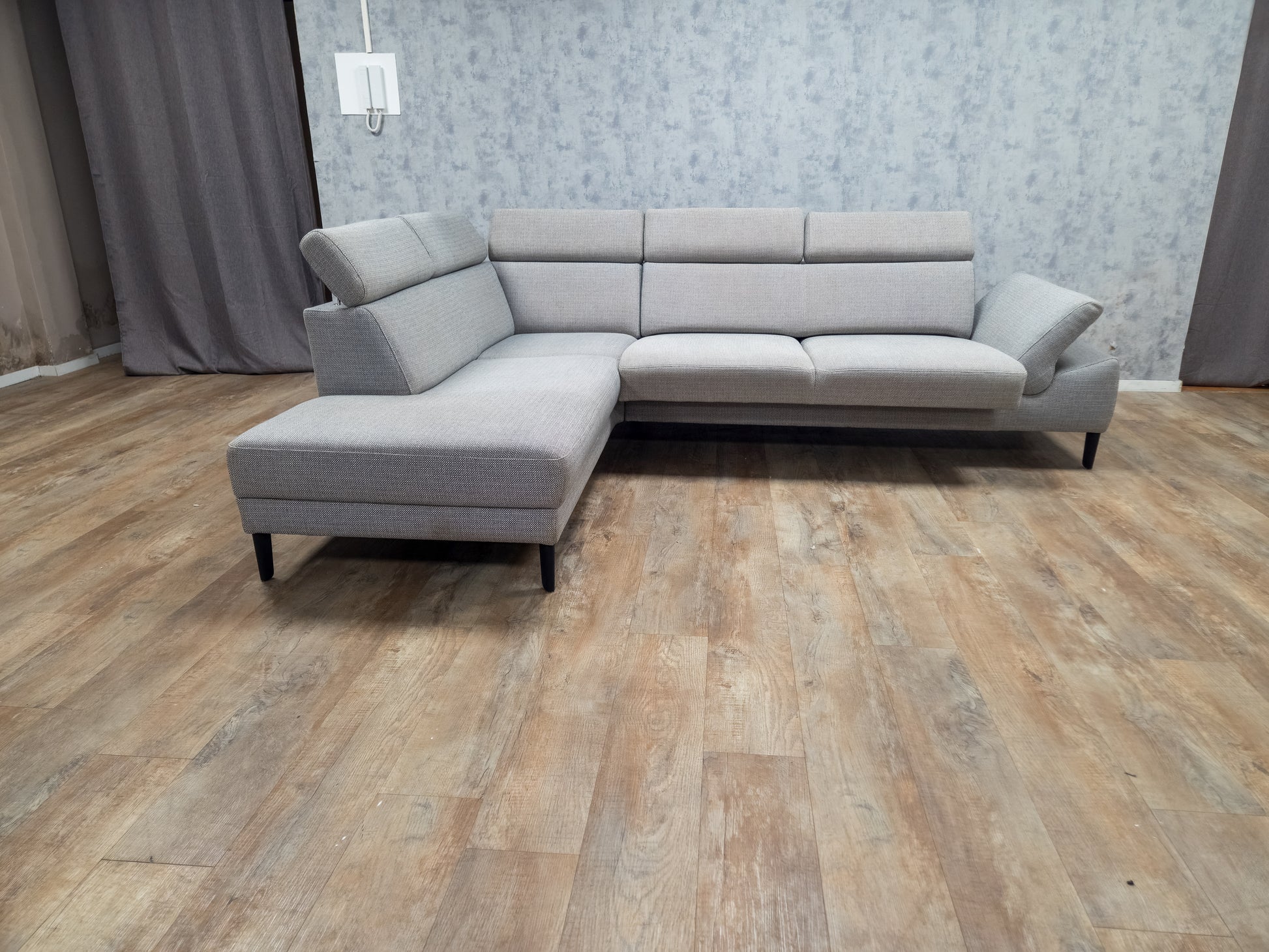 MONTEL Grijs Hoekbank - Met Hoofdsteunen Verstelbaar